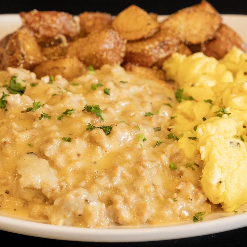 Biscuit & Gravy with Chorizo & 3 Eggs